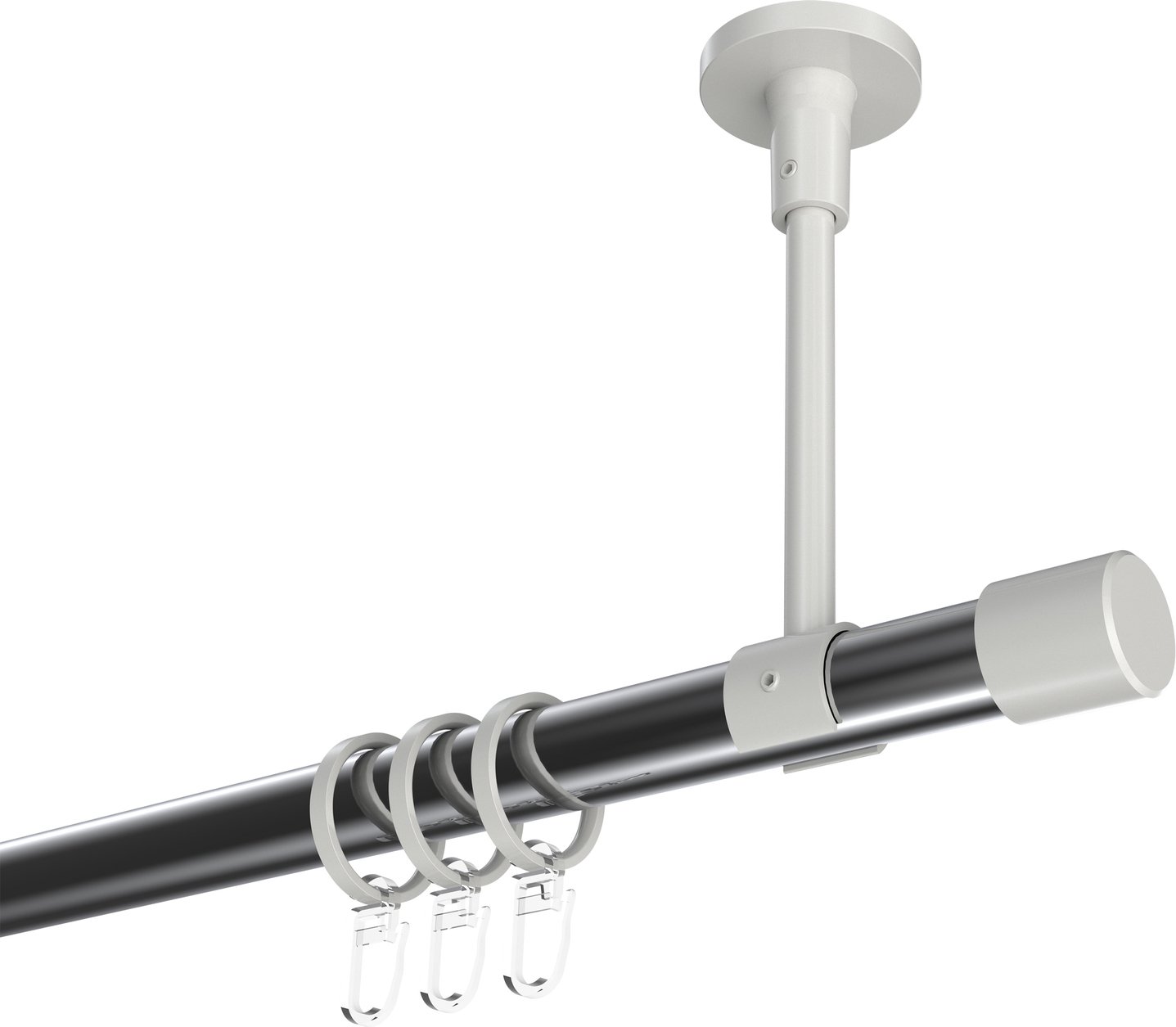 Gardinenstangen aus Metall in 20 mm Ø, 1-läufig, Modell SONETTE - Santo Chrom / Weiß