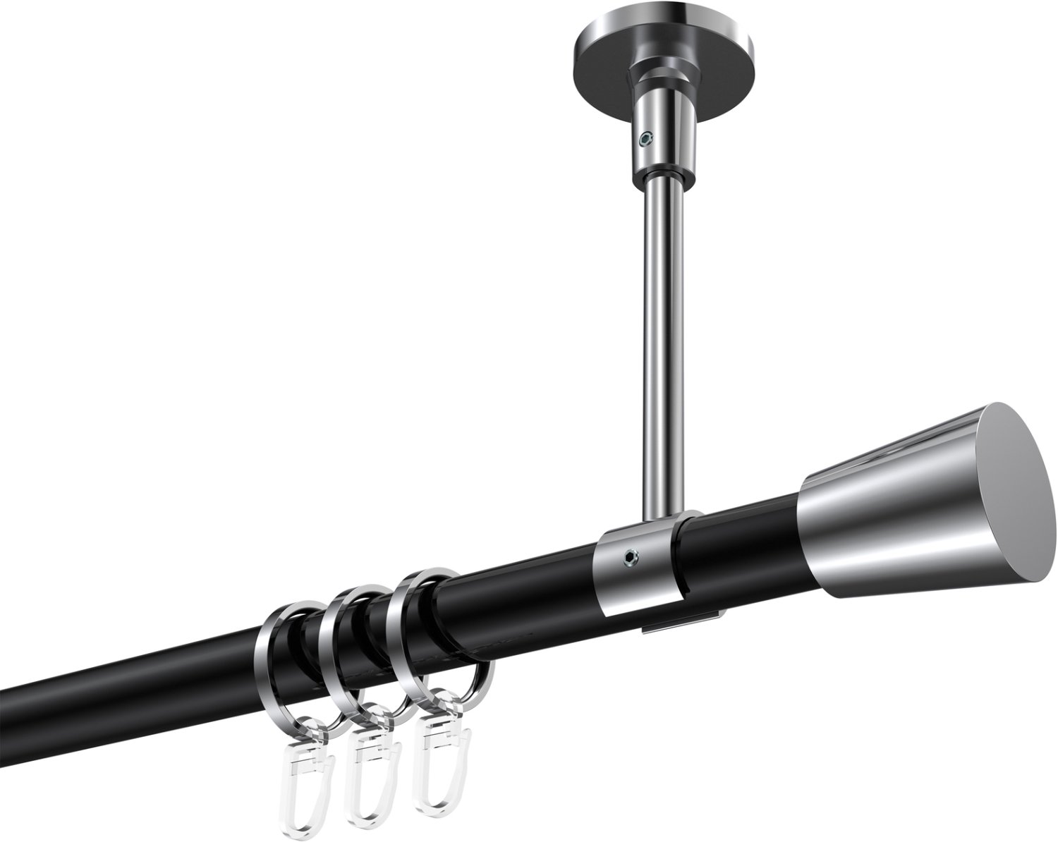 Gardinenstangen aus Metall in 20 mm Ø, 1-läufig, Modell SONETTE - Sitra Schwarz / Chrom