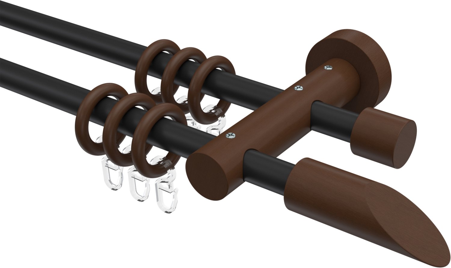 Informationen zu Gardinenstange Metall / Holz 16 mm Ø 2-läufig ADRIAN - Franca Schwarz / Nussbaum lackiert:
