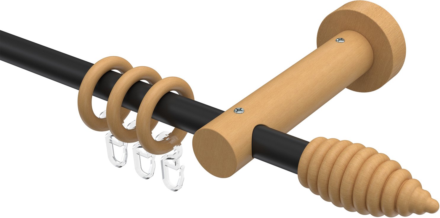 Gardinenstangen aus Metall / Holz in 16 mm Ø, 1-läufig, Modell ADRIAN - Asta Schwarz / Buche lackiert