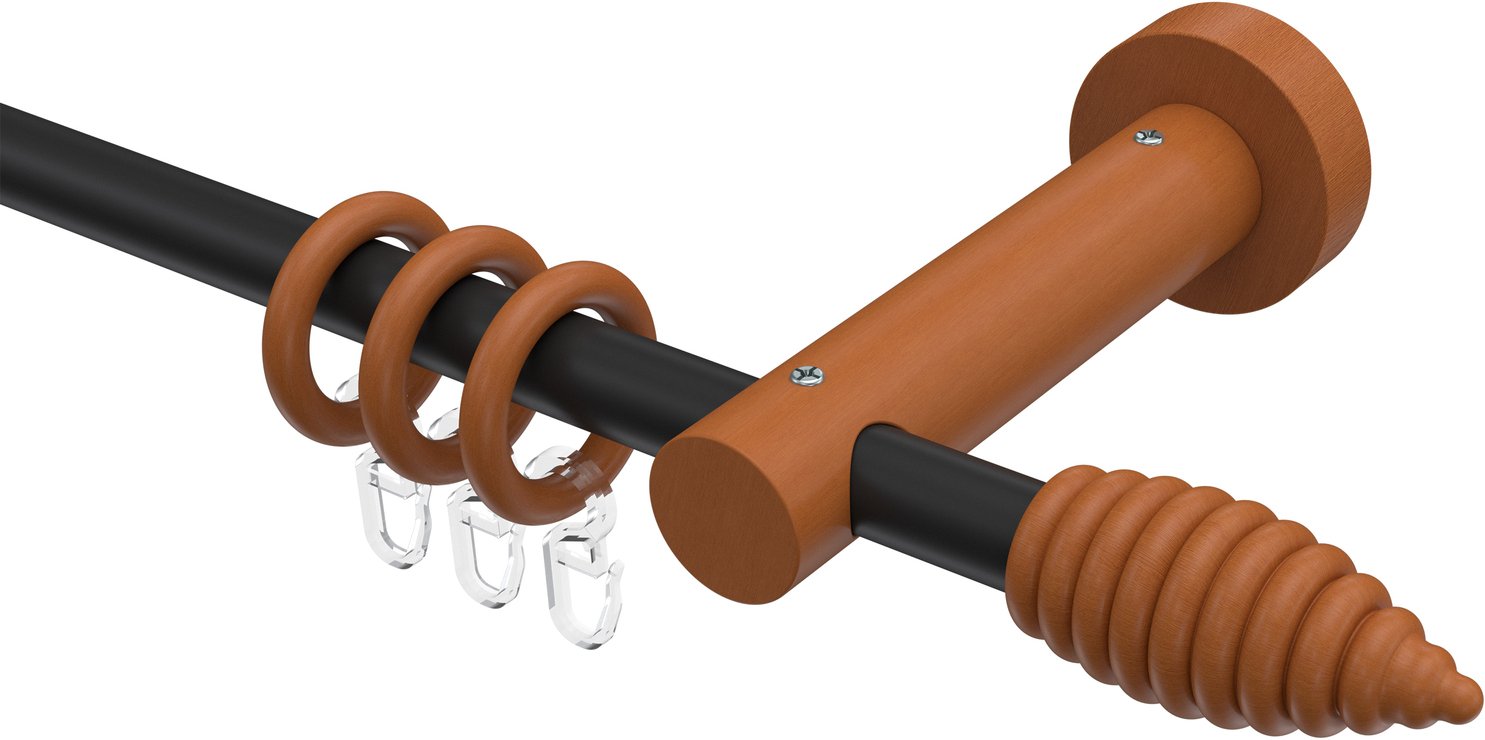 Gardinenstangen aus Metall / Holz in 16 mm Ø, 1-läufig, Modell ADRIAN - Asta Schwarz / Kirschbaum lackiert