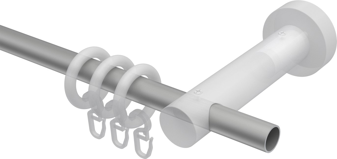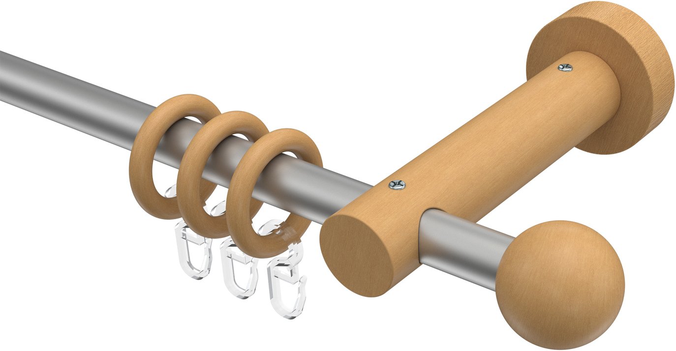 Gardinenstangen aus Metall / Holz in 16 mm Ø, 1-läufig, Modell ADRIAN - Geo Silbergrau / Buche lackiert