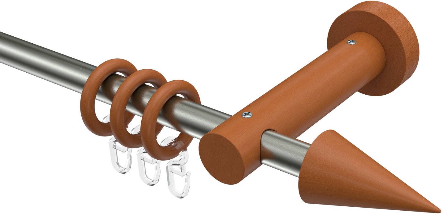 Gardinenstangen aus Metall / Holz in 16 mm Ø, 1-läufig, Modell ADRIAN - Holly Edelstahl-Optik / Kirschbaum lackiert