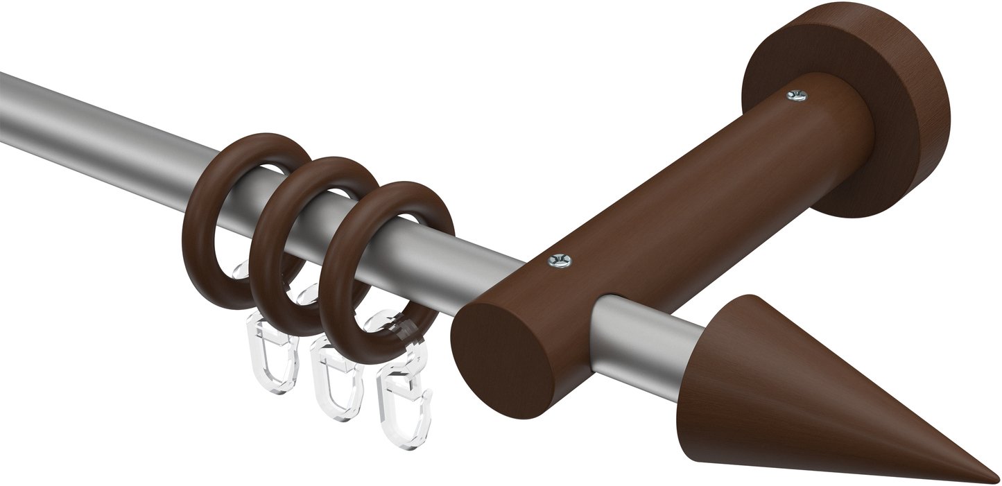 Gardinenstangen aus Metall / Holz in 16 mm Ø, 1-läufig, Modell ADRIAN - Holly Silbergrau / Nussbaum lackiert