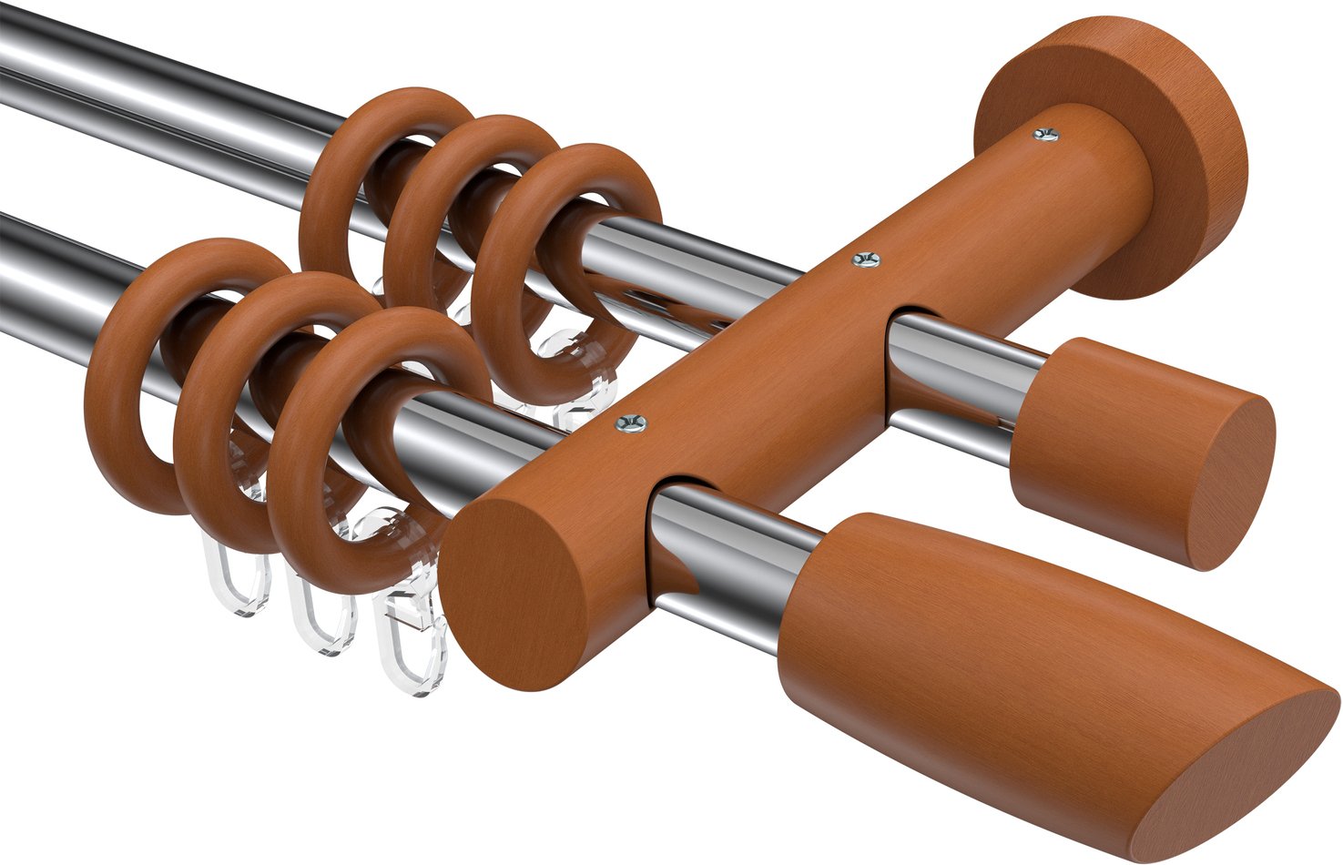 Gardinenstangen aus Metall / Holz in 20 mm Ø, 2-läufig, Modell TALENA - Etta Chrom / Kirschbaum lackiert