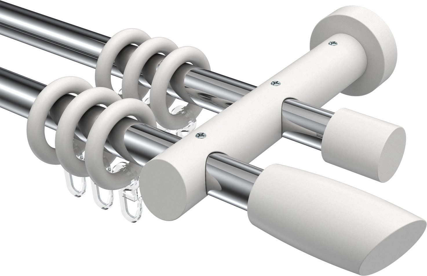 Informationen zu Gardinenstange Metall / Holz 20 mm Ø 2-läufig TALENA - Etta Chrom / Weiß lackiert: