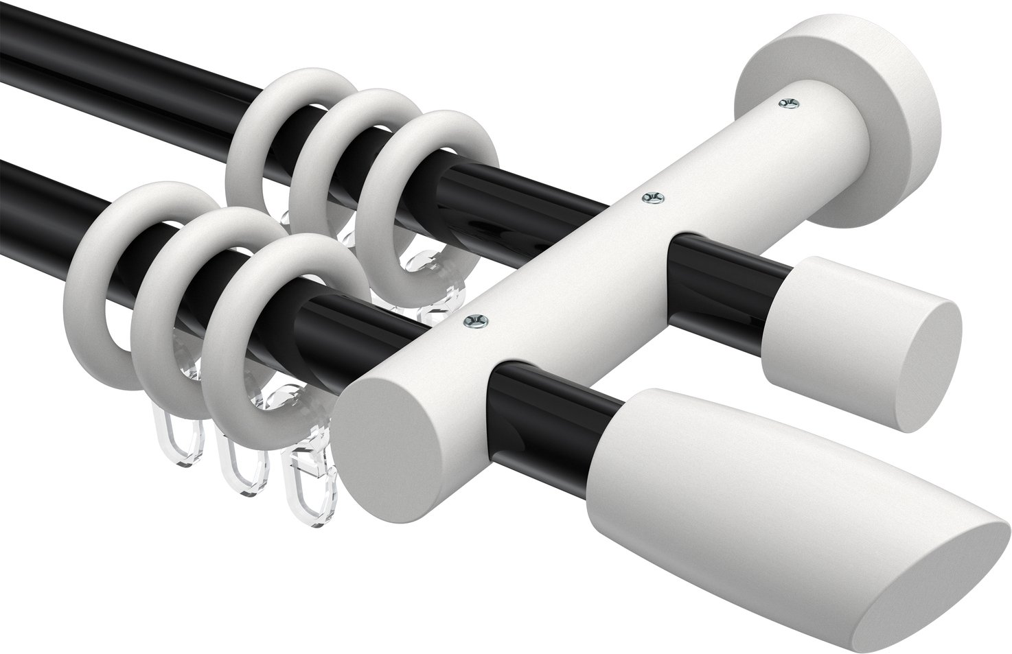 Gardinenstangen aus Metall / Holz in 20 mm Ø, 2-läufig, Modell TALENA - Etta Schwarz / Weiß lackiert