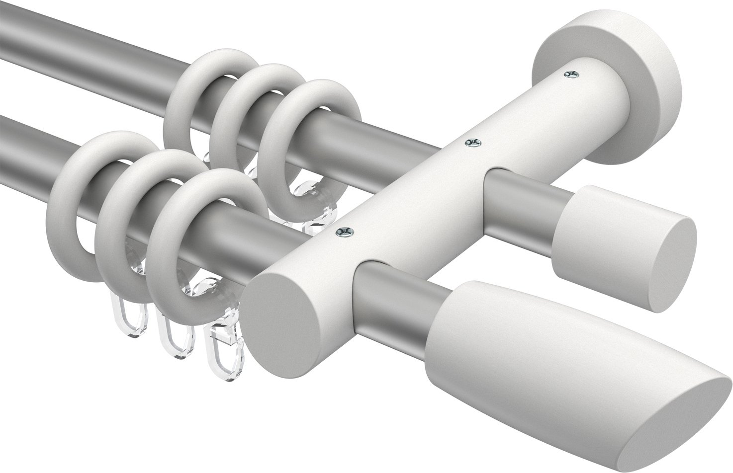 Gardinenstangen aus Metall / Holz in 20 mm Ø, 2-läufig, Modell TALENA - Etta Silbergrau / Weiß lackiert