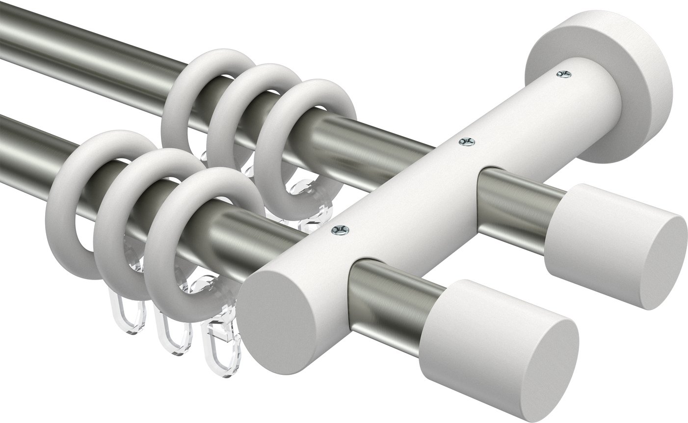 Gardinenstangen aus Metall / Holz in 20 mm Ø, 2-läufig, Modell TALENA - Feta Edelstahl-Optik / Weiß lackiert