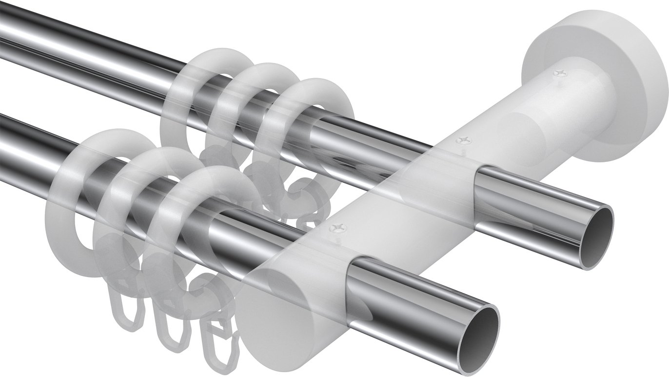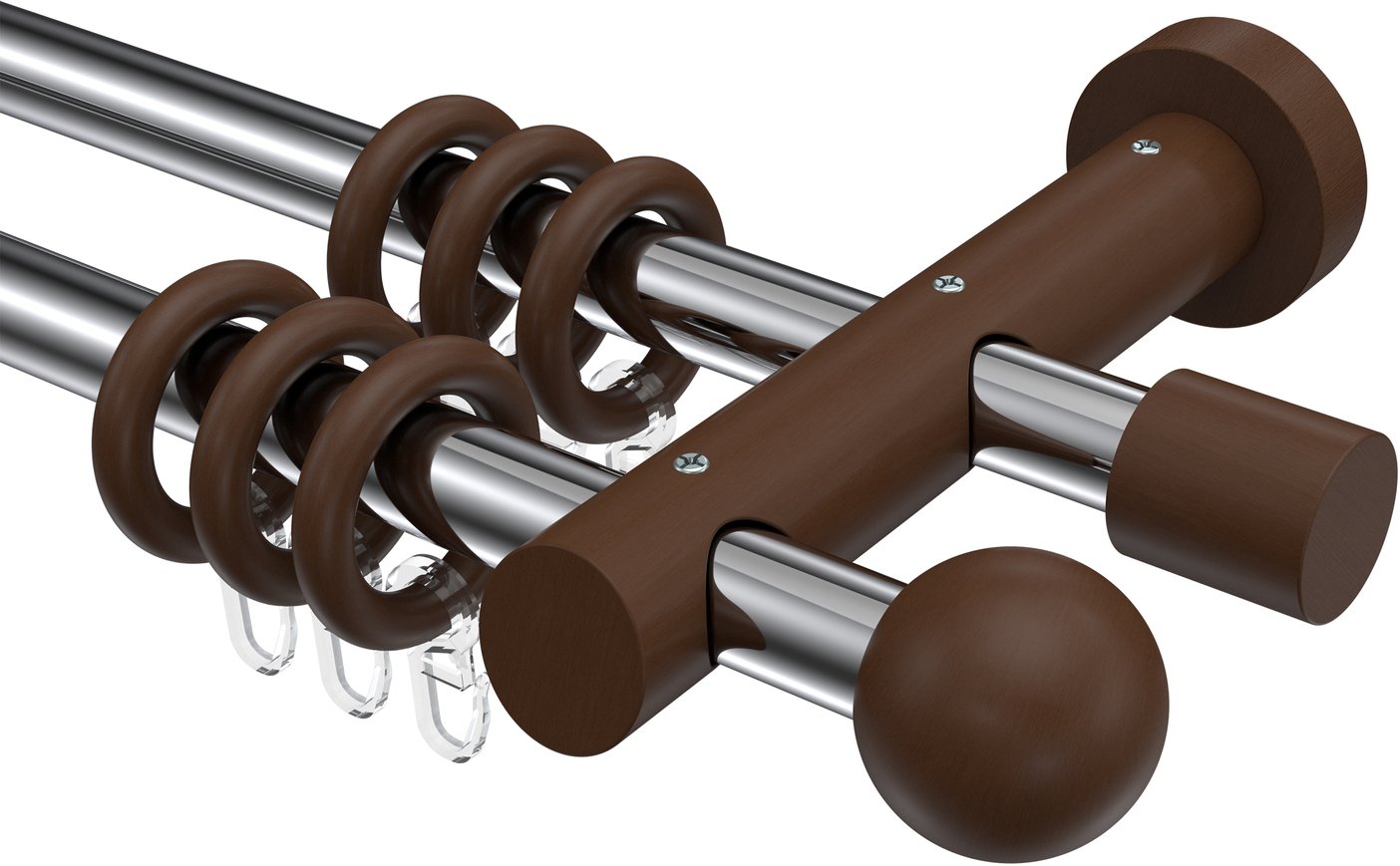 Gardinenstangen aus Metall / Holz in 20 mm Ø, 2-läufig, Modell TALENA - Luina Chrom / Nussbaum lackiert