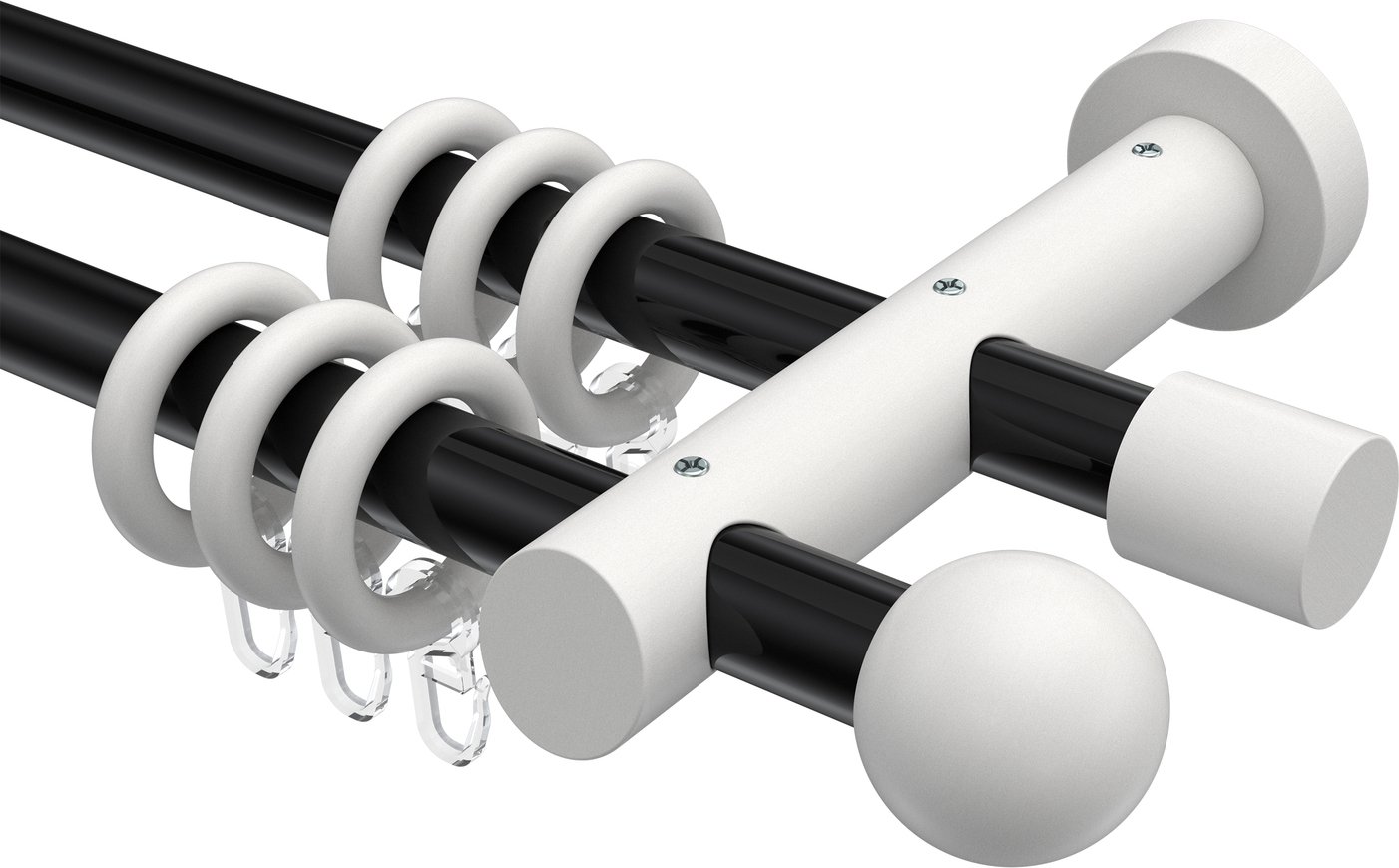 Gardinenstangen aus Metall / Holz in 20 mm Ø, 2-läufig, Modell TALENA - Luina Schwarz / Weiß lackiert