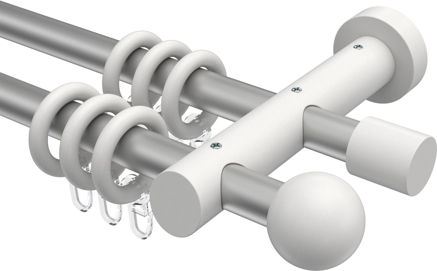 Gardinenstangen aus Metall / Holz in 20 mm Ø, 2-läufig, Modell TALENA - Luina Silbergrau / Weiß lackiert