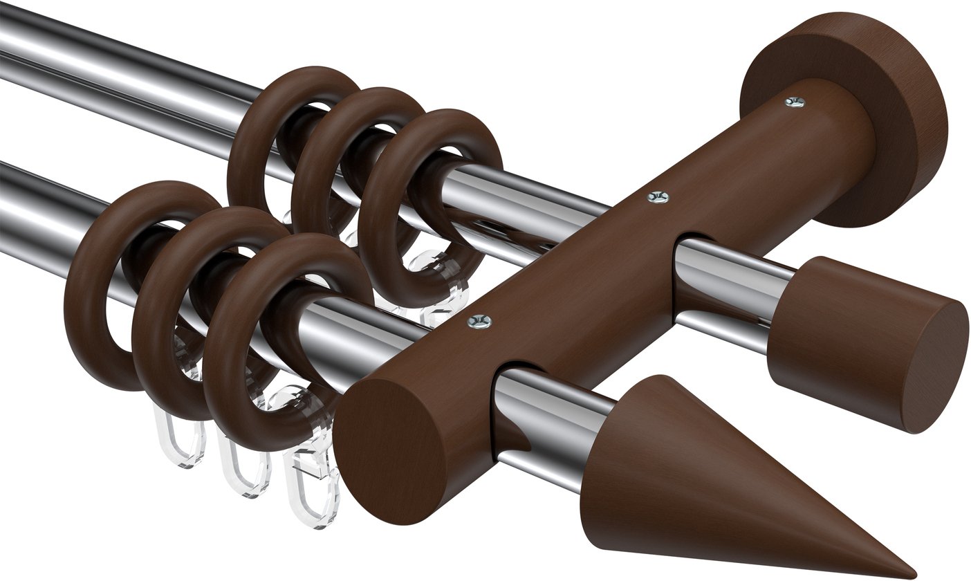 Informationen zu Gardinenstange Metall / Holz 20 mm Ø 2-läufig TALENA - Siveo Chrom / Nussbaum lackiert: