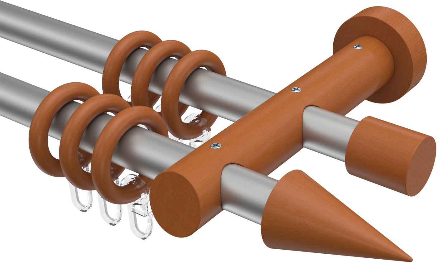 Informationen zu Gardinenstange Metall / Holz 20 mm Ø 2-läufig TALENA - Siveo Silbergrau / Kirschbaum lackiert: