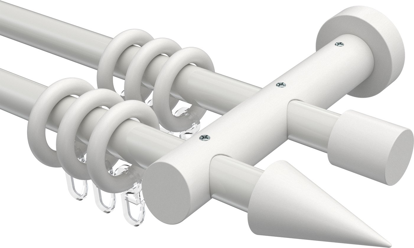 Gardinenstangen aus Metall / Holz in 20 mm Ø, 2-läufig, Modell TALENA - Siveo Weiß lackiert
