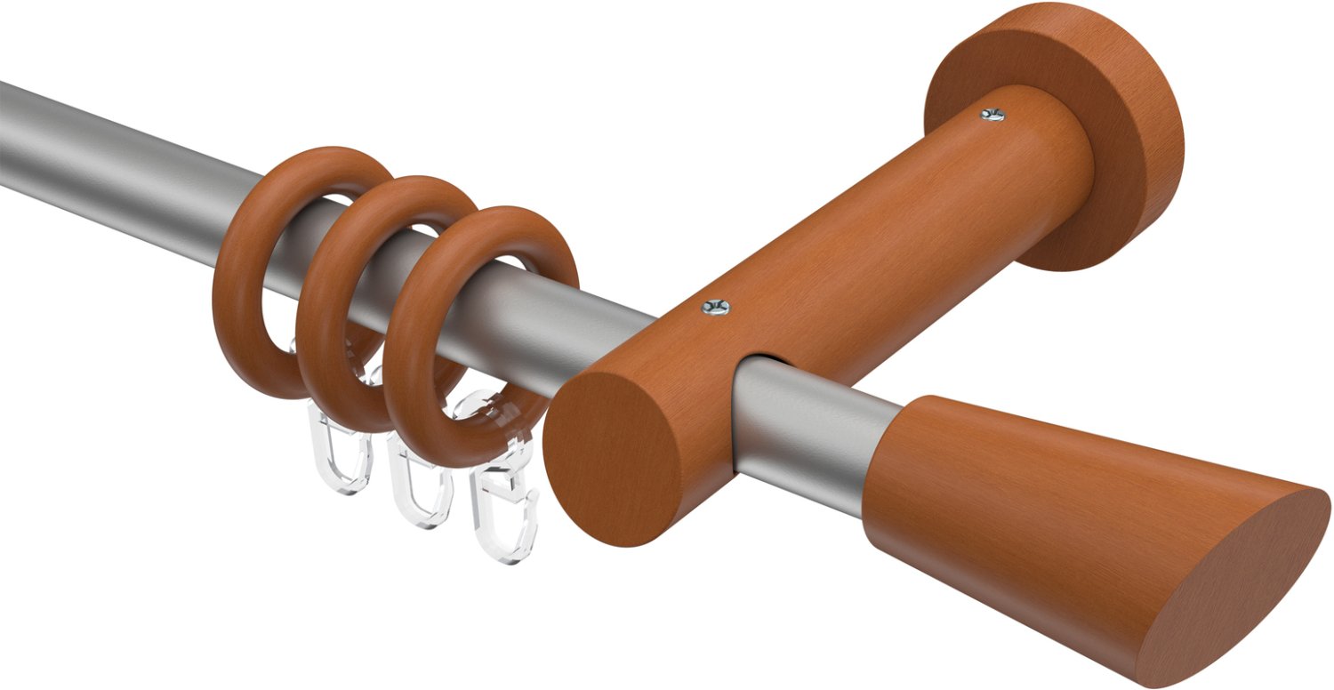 Gardinenstangen aus Metall / Holz in 20 mm Ø, 1-läufig, Modell TALENA - Bero Silbergrau / Kirschbaum lackiert