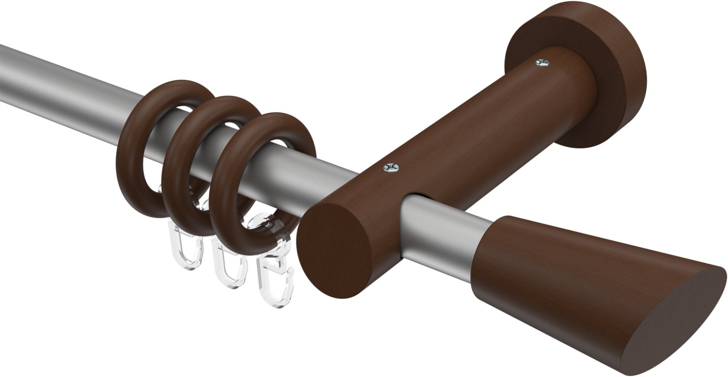 Gardinenstangen aus Metall / Holz in 20 mm Ø, 1-läufig, Modell TALENA - Bero Silbergrau / Nussbaum lackiert