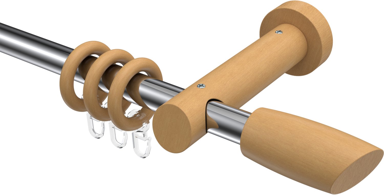 Gardinenstangen aus Metall / Holz in 20 mm Ø, 1-läufig, Modell TALENA - Etta Chrom / Buche lackiert