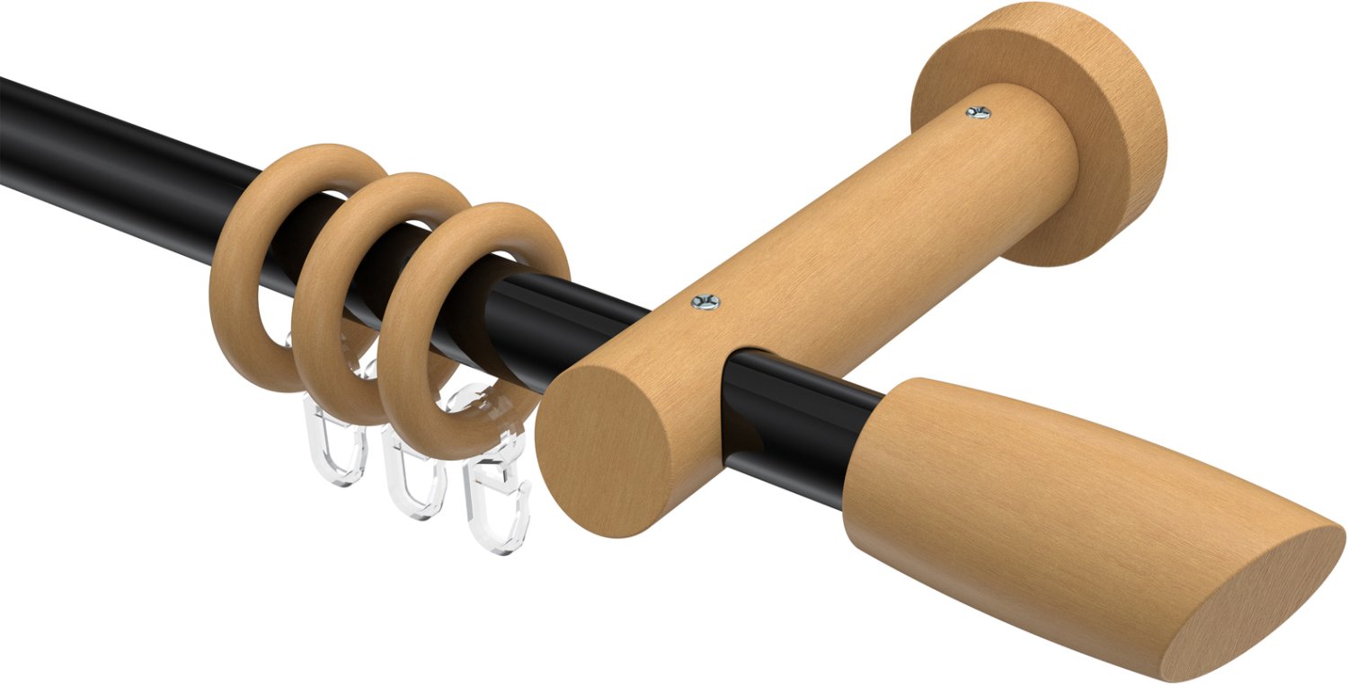 Gardinenstangen aus Metall / Holz in 20 mm Ø, 1-läufig, Modell TALENA - Etta Schwarz / Buche lackiert