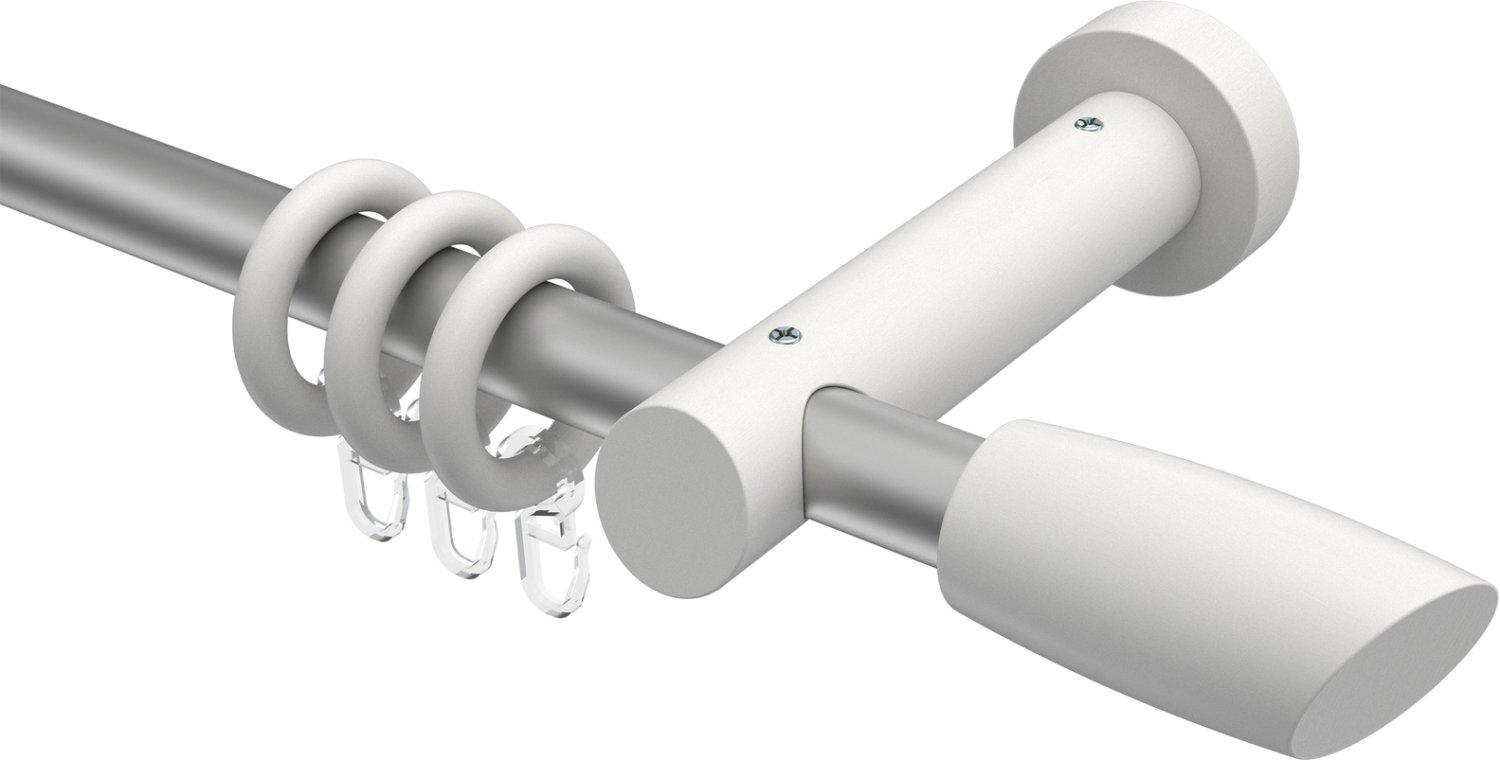 Gardinenstangen aus Metall / Holz in 20 mm Ø, 1-läufig, Modell TALENA - Etta Silbergrau / Weiß lackiert