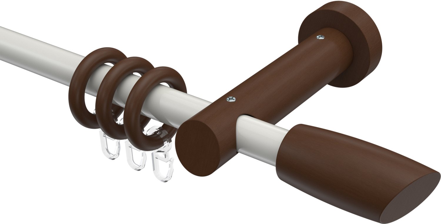 Gardinenstangen aus Metall / Holz in 20 mm Ø, 1-läufig, Modell TALENA - Etta Weiß lackiert / Nussbaum lackiert