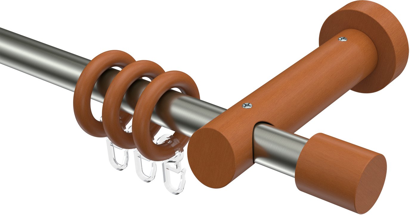 Gardinenstangen aus Metall / Holz in 20 mm Ø, 1-läufig, Modell TALENA - Feta Edelstahl-Optik / Kirschbaum lackiert
