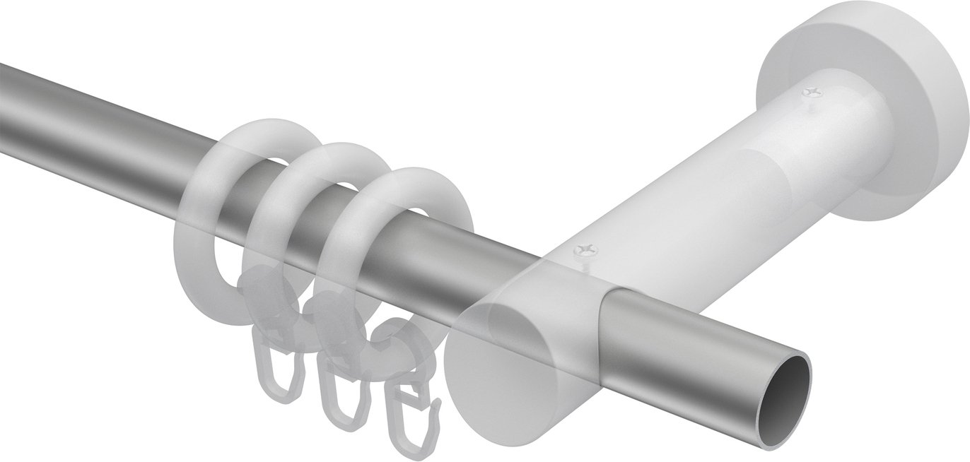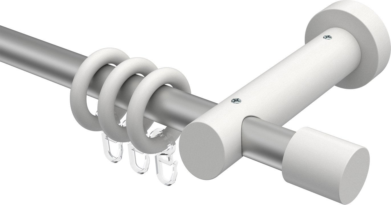 Gardinenstangen aus Metall / Holz in 20 mm Ø, 1-läufig, Modell TALENA - Feta Silbergrau / Weiß lackiert