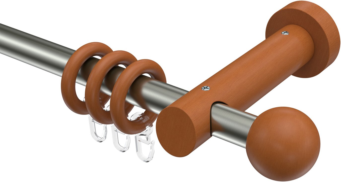 Gardinenstangen aus Metall / Holz in 20 mm Ø, 1-läufig, Modell TALENA - Luina Edelstahl-Optik / Kirschbaum lackiert