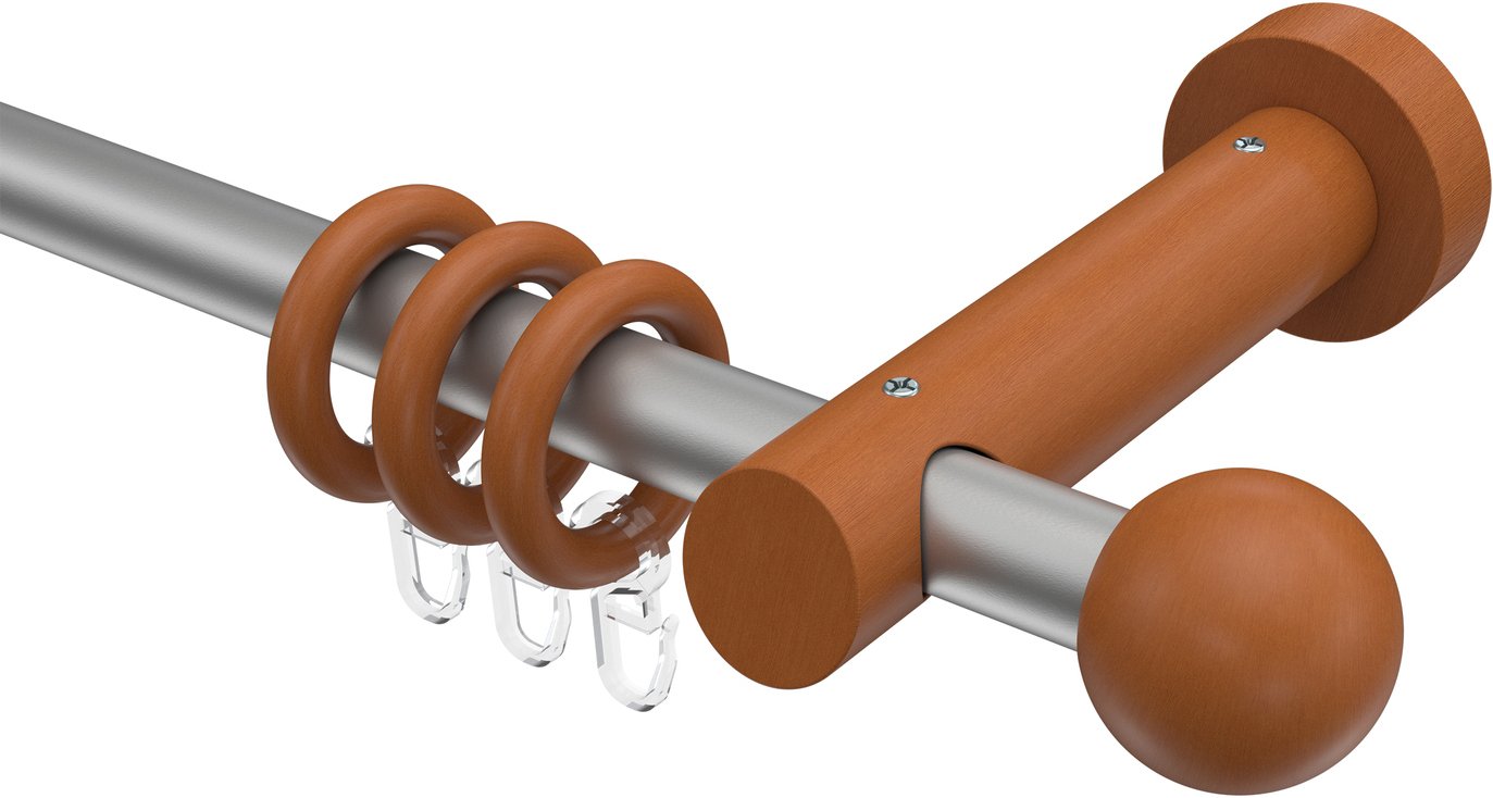 Gardinenstangen aus Metall / Holz in 20 mm Ø, 1-läufig, Modell TALENA - Luina Silbergrau / Kirschbaum lackiert
