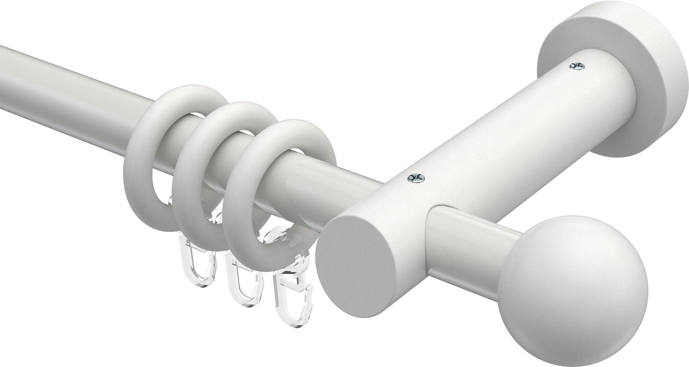 Gardinenstangen aus Metall / Holz in 20 mm Ø, 1-läufig, Modell TALENA - Luina Weiß lackiert