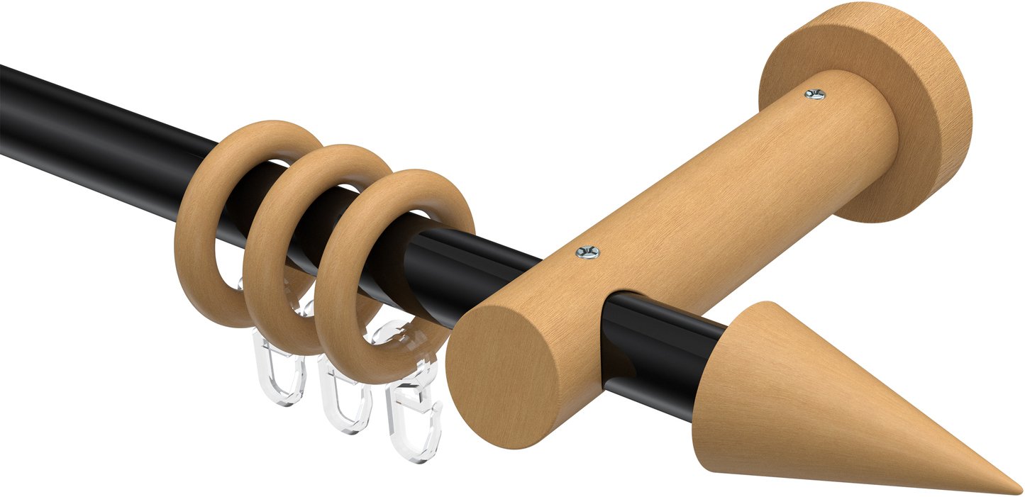 Gardinenstangen aus Metall / Holz in 20 mm Ø, 1-läufig, Modell TALENA - Siveo Schwarz / Buche lackiert