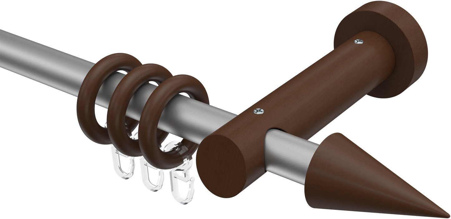 Gardinenstangen aus Metall / Holz in 20 mm Ø, 1-läufig, Modell TALENA - Siveo Silbergrau / Nussbaum lackiert