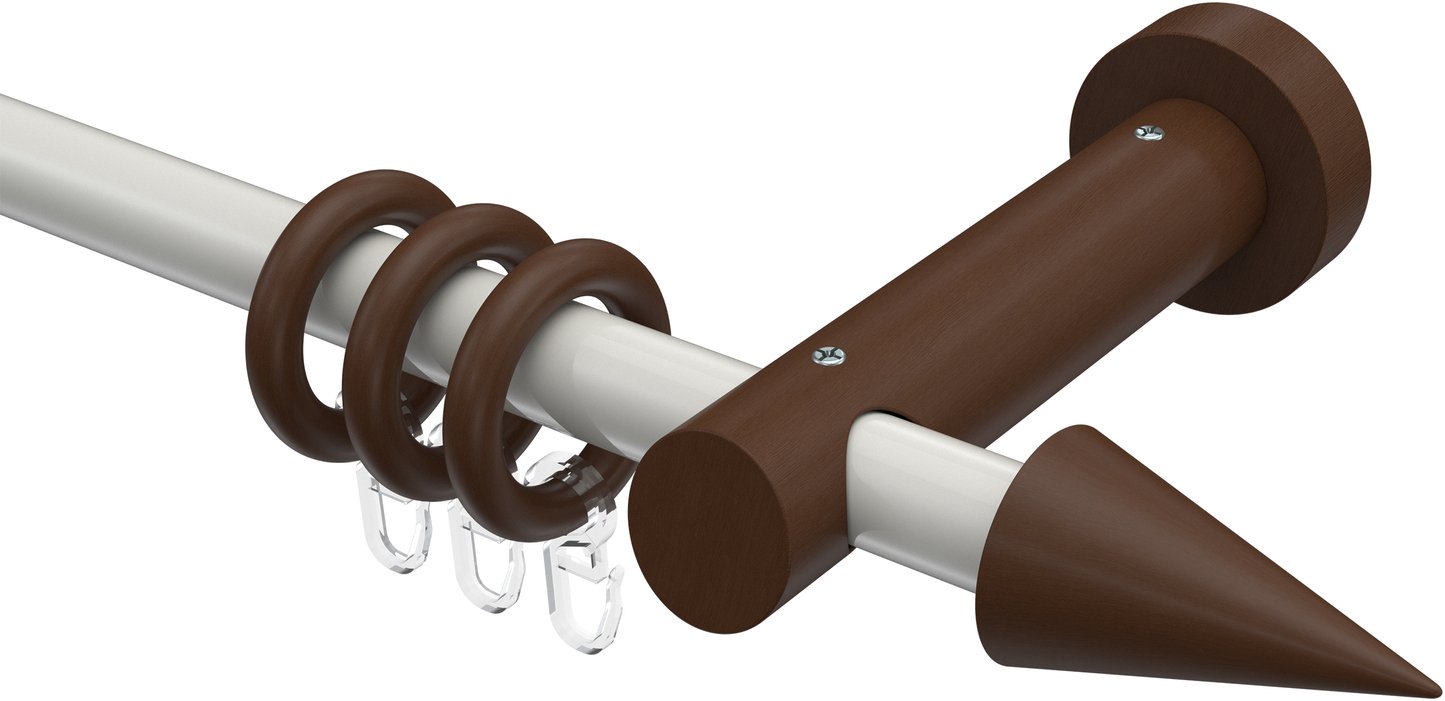 Gardinenstangen aus Metall / Holz in 20 mm Ø, 1-läufig, Modell TALENA - Siveo Weiß lackiert / Nussbaum lackiert