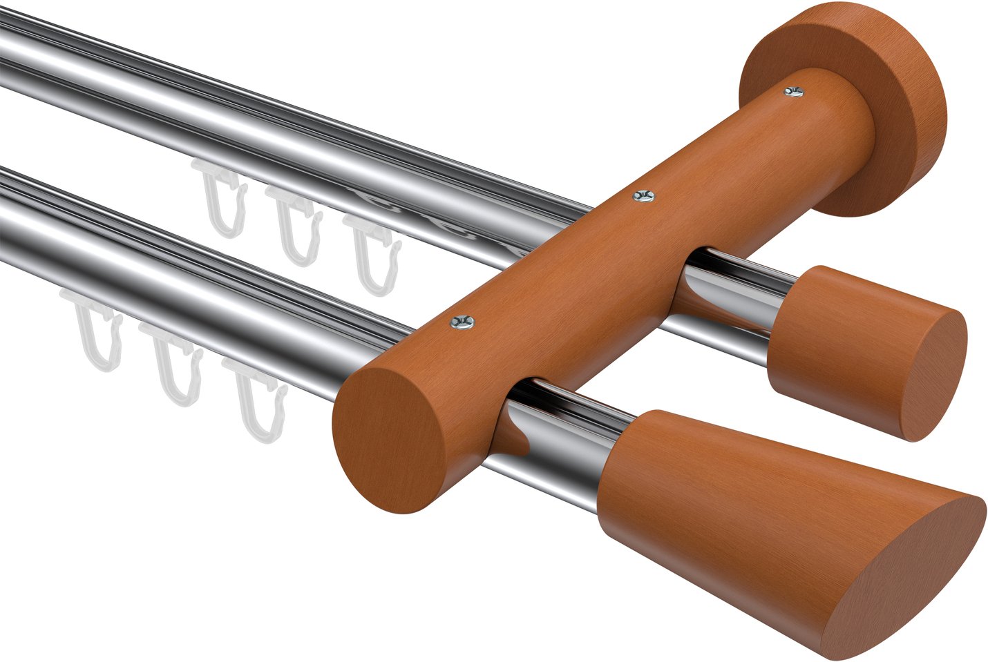 Gardinenstangen mit Innenlauf aus Aluminium / Holz in 20 mm Ø, 2-läufig, Modell TALENT - Bero Chrom / Kirschbaum lackiert