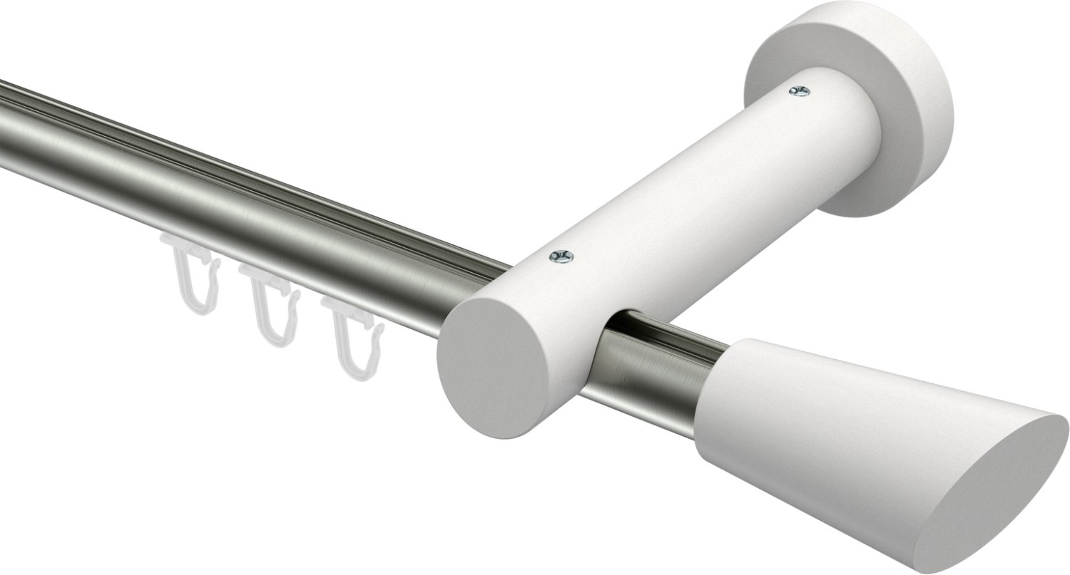 Gardinenstangen mit Innenlauf aus Aluminium / Holz in 20 mm Ø, 1-läufig, Modell TALENT - Bero Edelstahl-Optik / Weiß lackiert