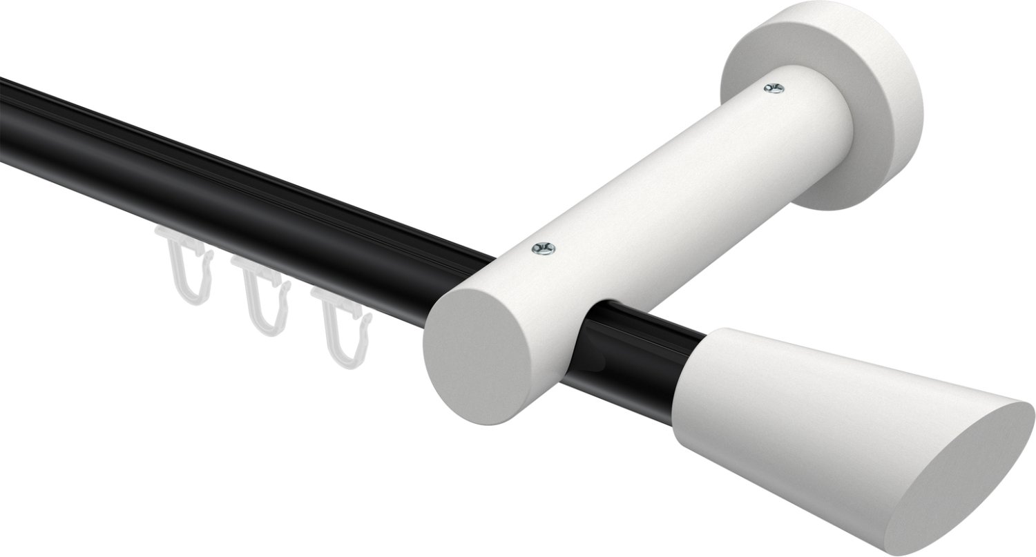 Gardinenstangen mit Innenlauf aus Aluminium / Holz in 20 mm Ø, 1-läufig, Modell TALENT - Bero Schwarz / Weiß lackiert