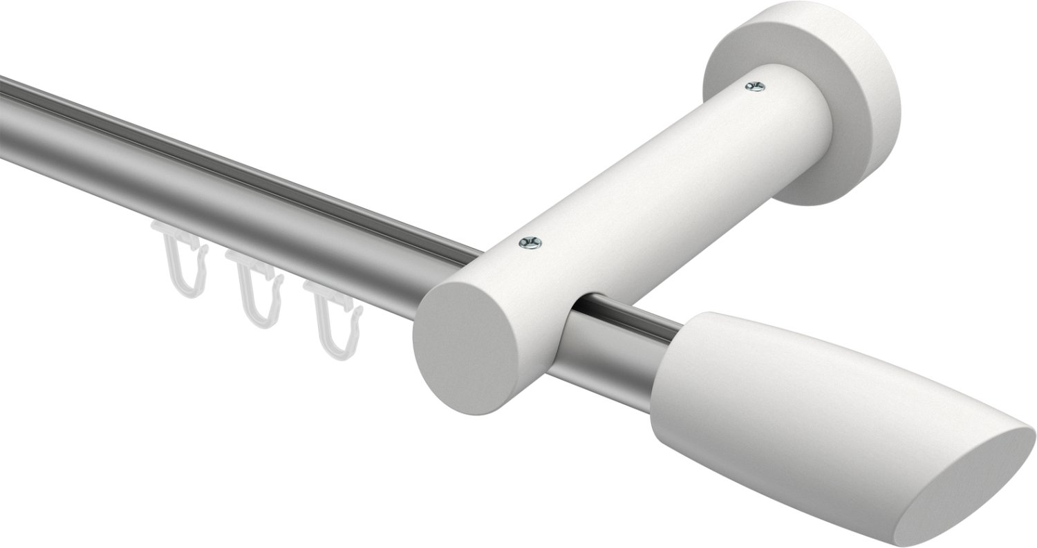 Gardinenstangen mit Innenlauf aus Aluminium / Holz in 20 mm Ø, 1-läufig, Modell TALENT - Etta Silbergrau / Weiß lackiert