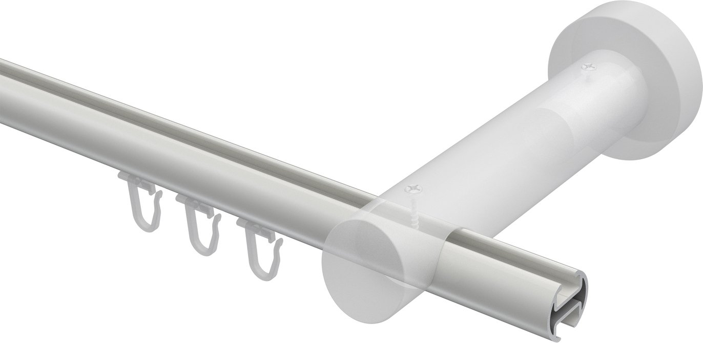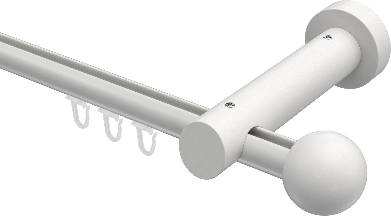 Gardinenstangen mit Innenlauf aus Aluminium / Holz in 20 mm Ø, 1-läufig, Modell TALENT - Luina Weiß lackiert