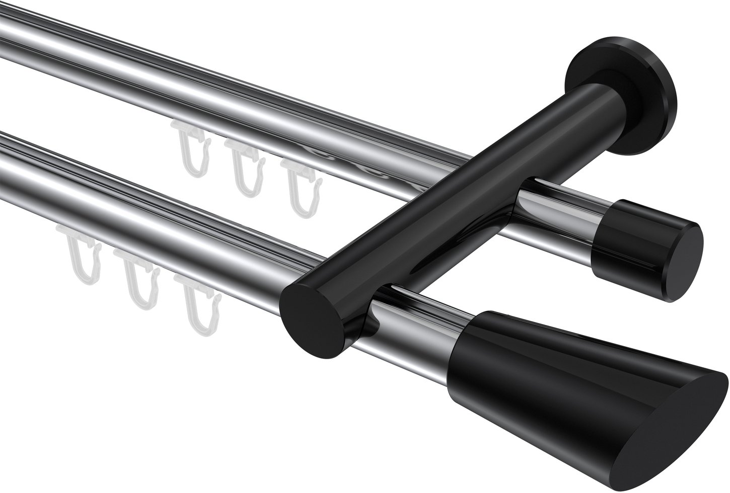 Informationen zu Innenlauf Gardinenstange Aluminium / Metall 20 mm Ø 2-läufig PLATON - Bento Chrom / Schwarz: