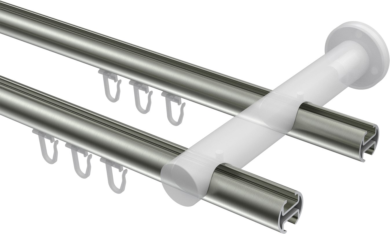 Informationen zu Innenlauf Gardinenstange Aluminium / Metall 20 mm Ø 2-läufig PLATON - Bento Edelstahl-Optik / Weiß: