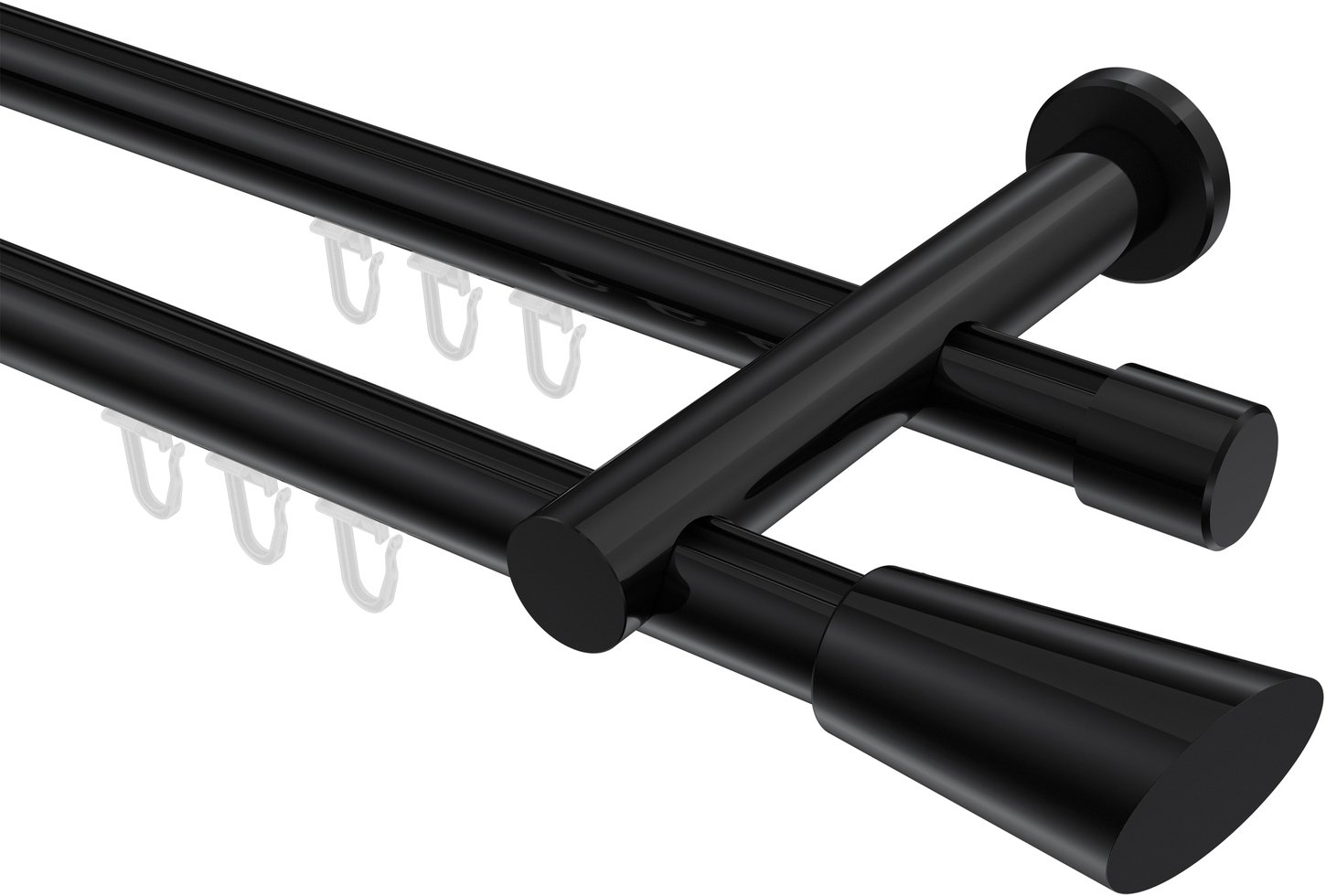 Gardinenstangen mit Innenlauf aus Aluminium / Metall in 20 mm Ø, 2-läufig, Modell PLATON - Bento Schwarz