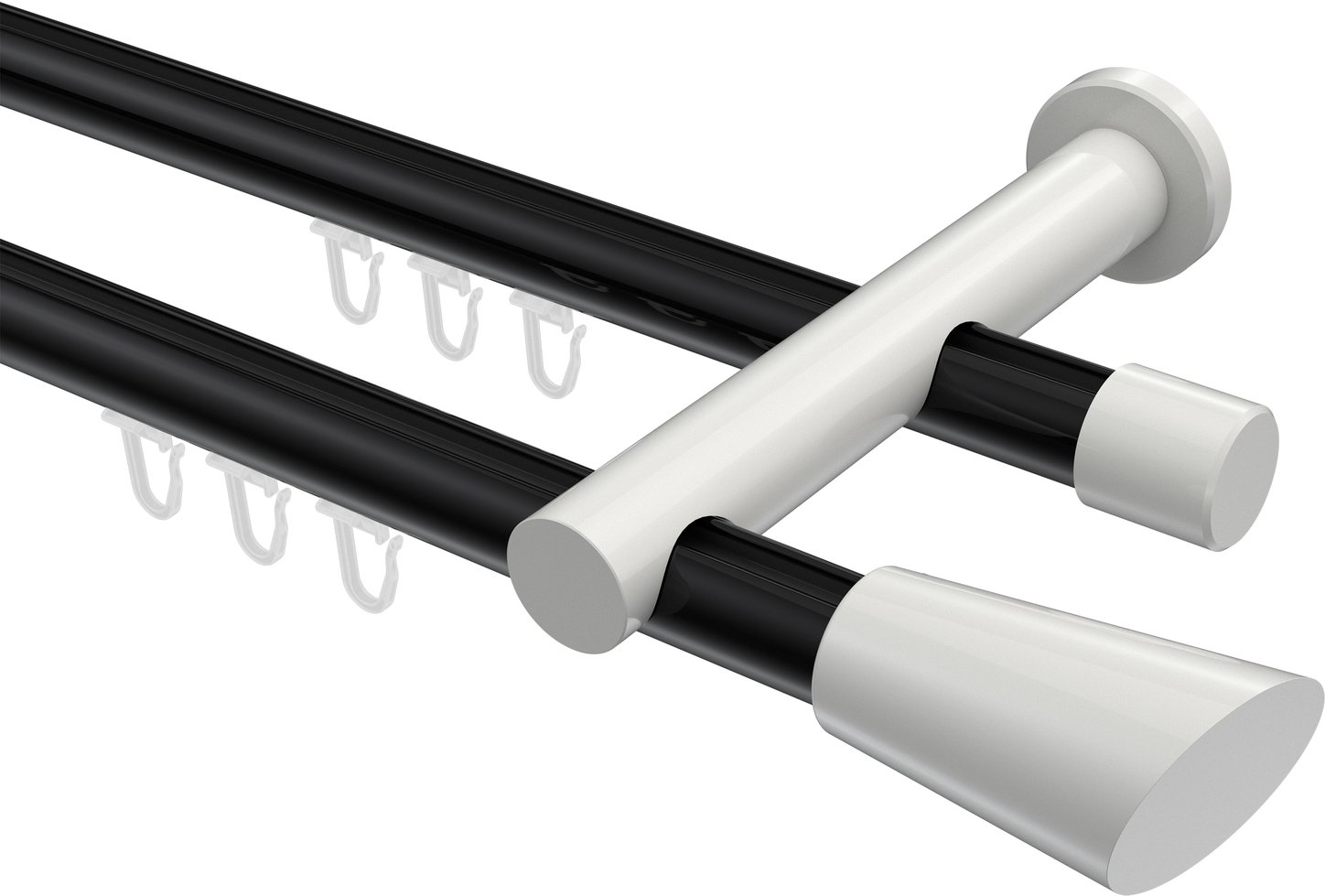 Informationen zu Innenlauf Gardinenstange Aluminium / Metall 20 mm Ø 2-läufig PLATON - Bento Schwarz / Weiß: