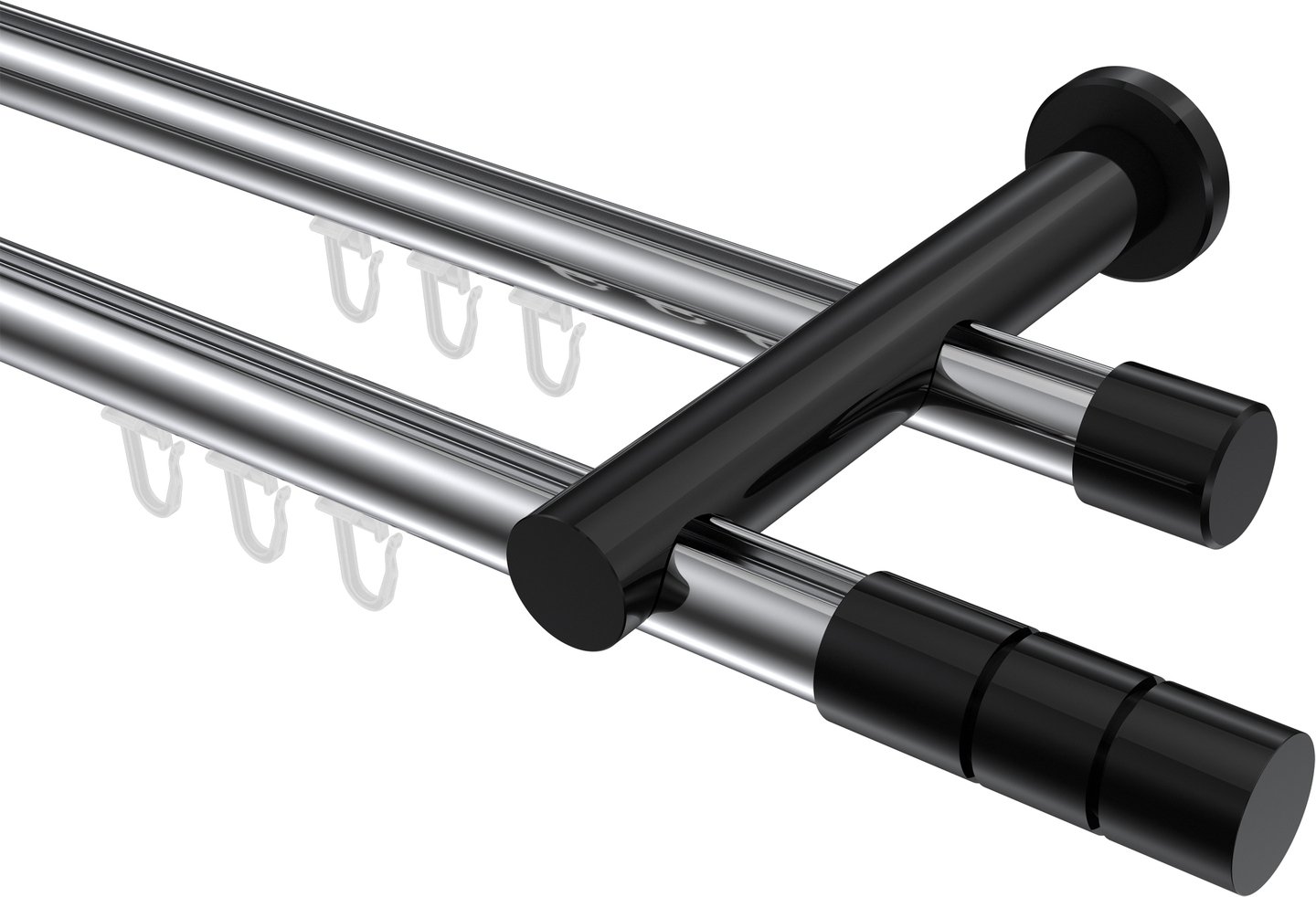Informationen zu Innenlauf Gardinenstange Aluminium / Metall 20 mm Ø 2-läufig PLATON - Elanto Chrom / Schwarz: