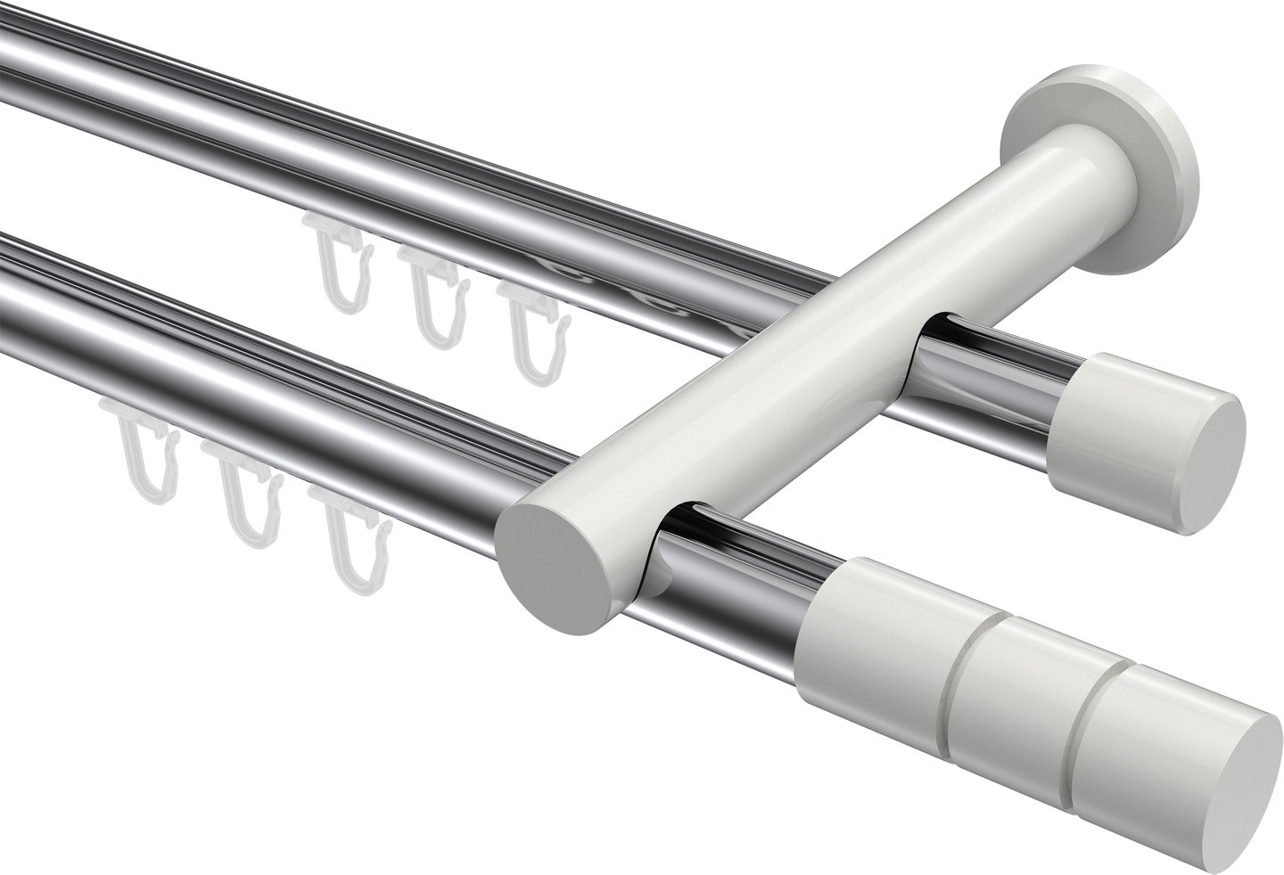 Gardinenstangen mit Innenlauf aus Aluminium / Metall in 20 mm Ø, 2-läufig, Modell PLATON - Elanto Chrom / Weiß