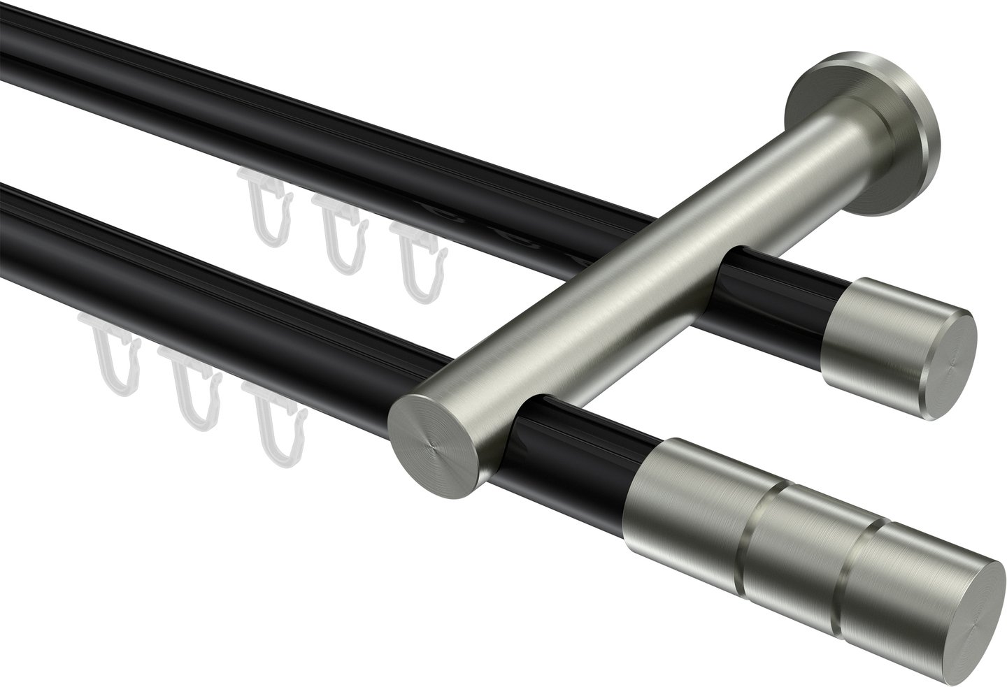 Gardinenstangen mit Innenlauf aus Aluminium / Metall in 20 mm Ø, 2-läufig, Modell PLATON - Elanto Schwarz / Edelstahl-Optik