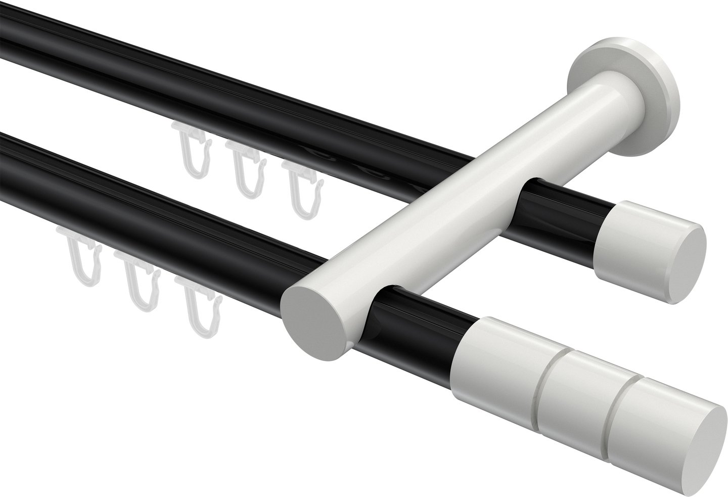 Informationen zu Innenlauf Gardinenstange Aluminium / Metall 20 mm Ø 2-läufig PLATON - Elanto Schwarz / Weiß: