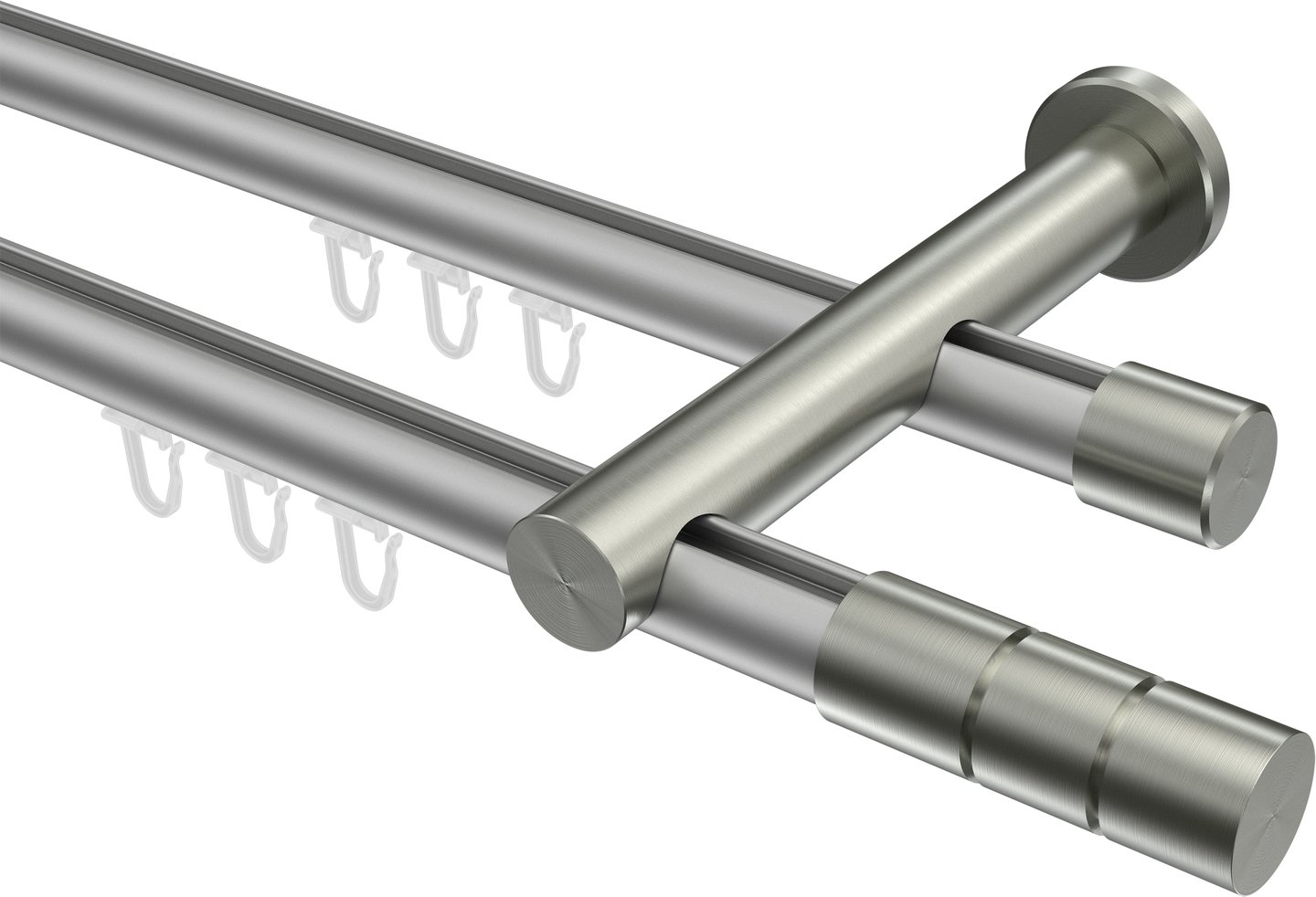 Informationen zu Innenlauf Gardinenstange Aluminium / Metall 20 mm Ø 2-läufig PLATON - Elanto Silbergrau / Edelstahl-Optik:
