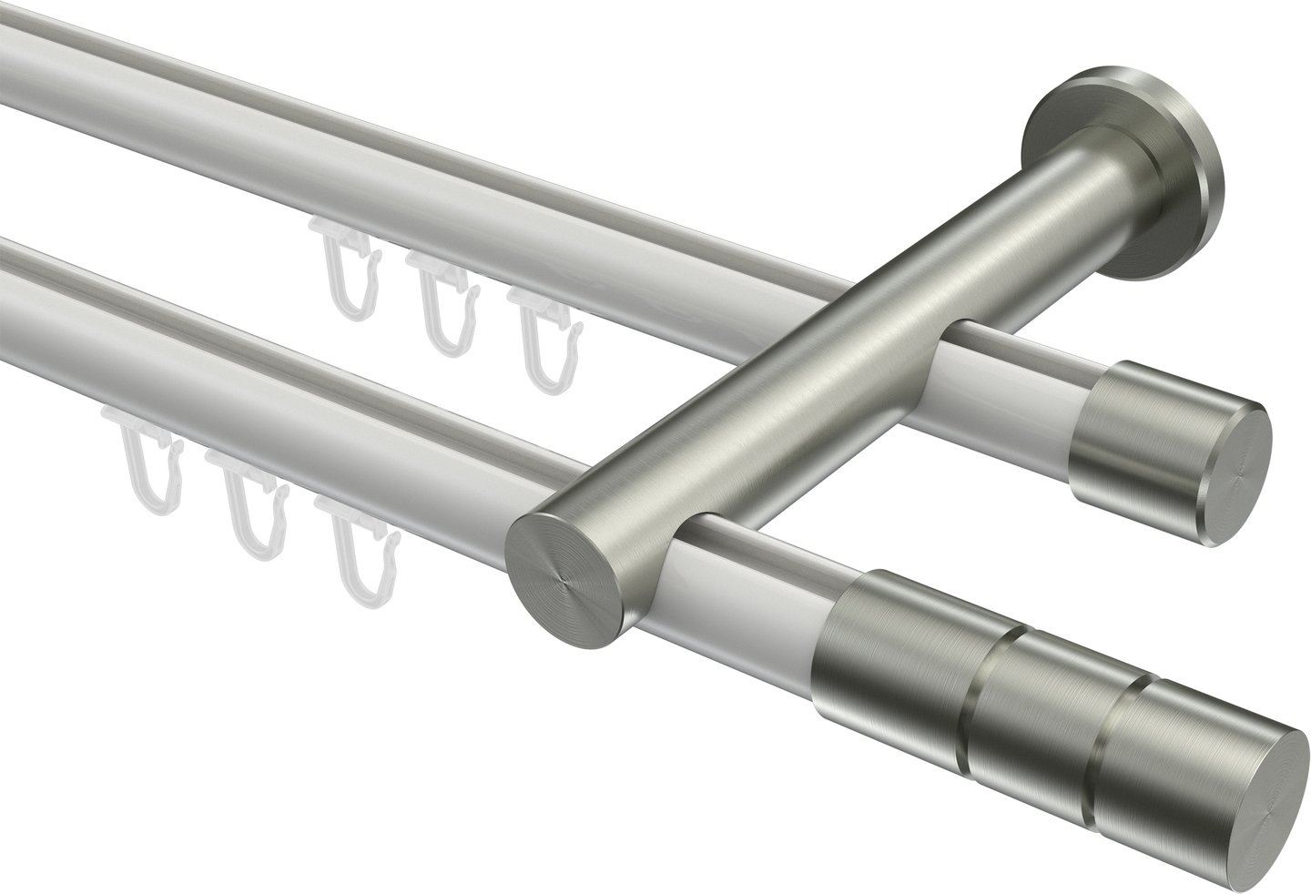 Gardinenstangen mit Innenlauf aus Aluminium / Metall in 20 mm Ø, 2-läufig, Modell PLATON - Elanto Weiß / Edelstahl-Optik