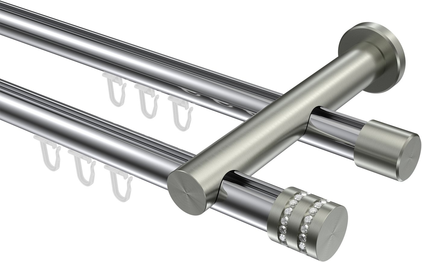 Gardinenstangen mit Innenlauf aus Aluminium / Metall in 20 mm Ø, 2-läufig, Modell PLATON - Estana Chrom / Edelstahl-Optik