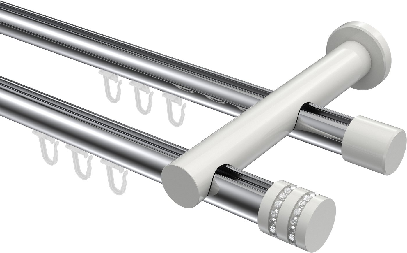 Informationen zu Innenlauf Gardinenstange Aluminium / Metall 20 mm Ø 2-läufig PLATON - Estana Chrom / Weiß: